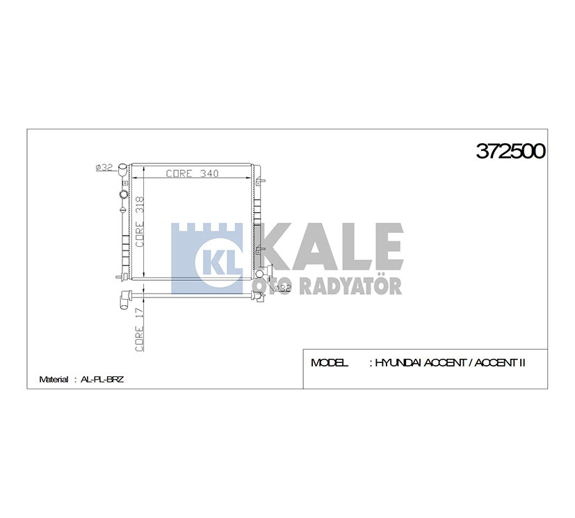 HYUNDAI SU RADYATÖRÜ (MT) ACCENT 00-06 1.3 335x317x16 KALE