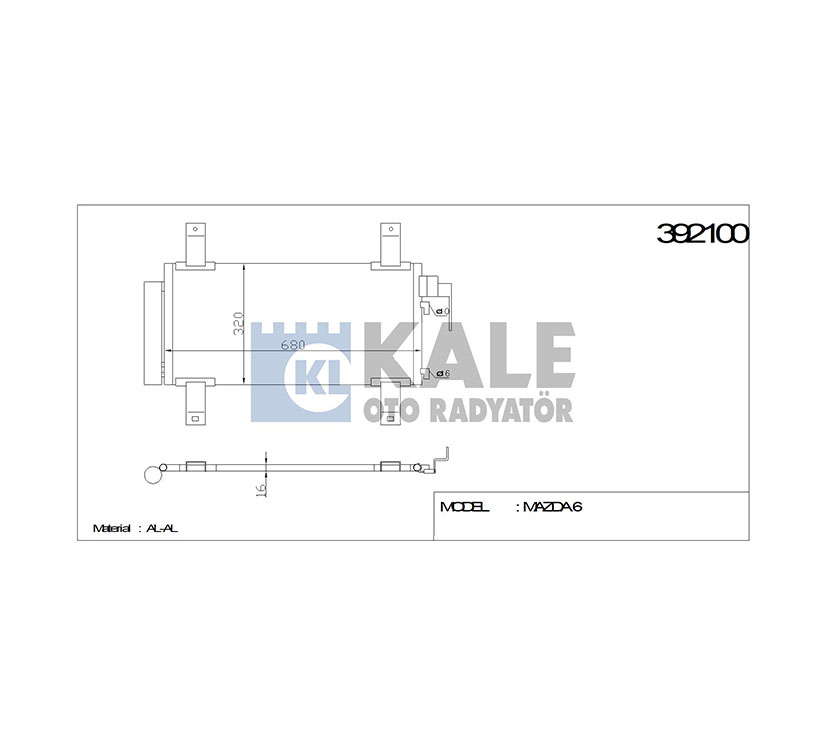 MAZDA KLİMA RADYATÖRÜ MAZDA 6 02-07 652x322x16 KALE