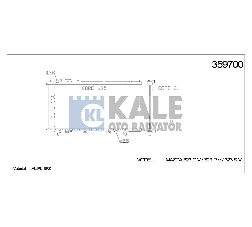 MAZDA SU RADYATÖRÜ (AT) MAZDA 323 95-98 1.5-1.8 330x688x16 KALE Parça Fiyatları
