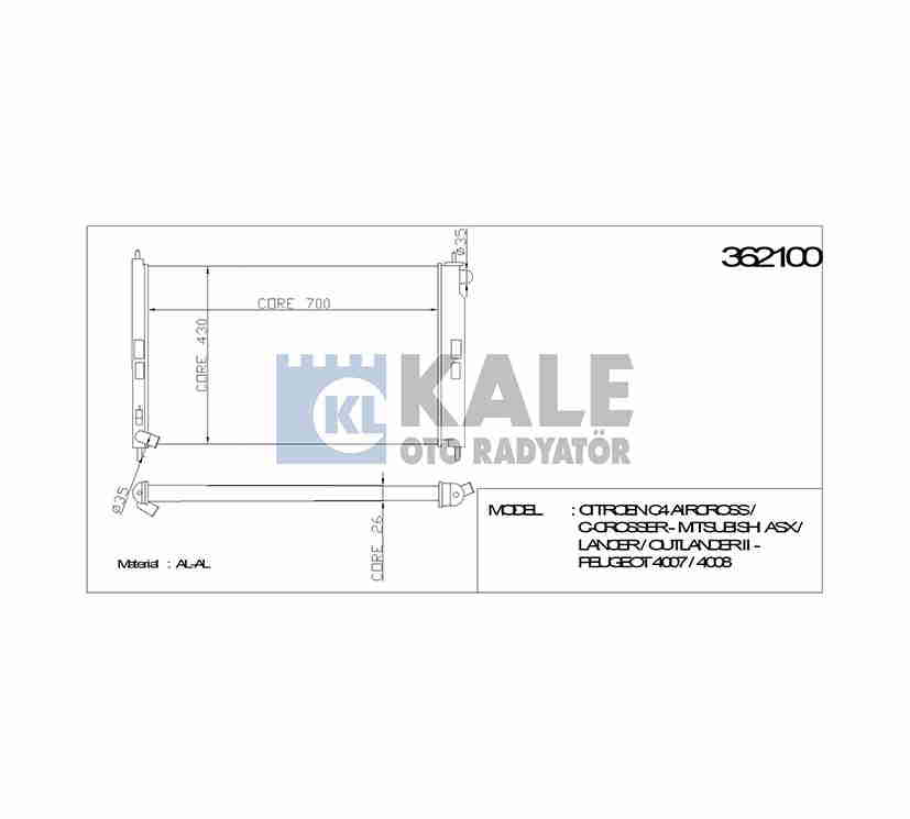 MITSUBISHI SU RADYATÖRÜ (ATMT) LANCER 08- ASX 10- OUTLANDER 06-13 PEUGEOT 4007 4008 DİZEL 698x408x26 KALE