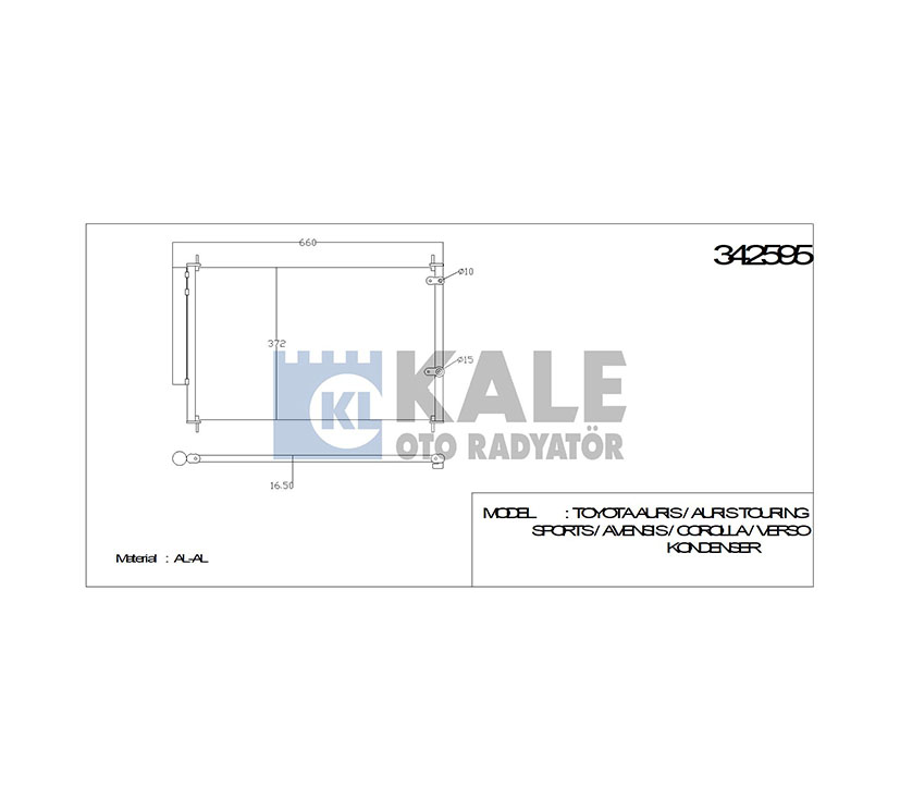 TOYOTA KLİMA RADYATÖRÜ COROLLA 07- AURIS 08- AVENSIS 08- VERSO 09- KALE