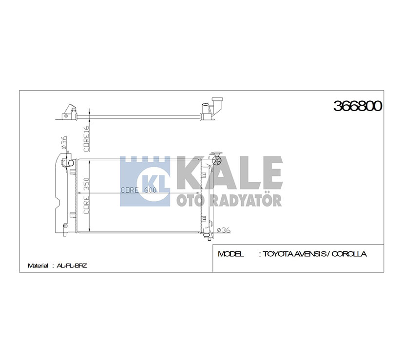 TOYOTA SU RADYATÖRÜ (AT) COROLLA 02-06 3ZZ AVENSIS 03- 3ZZ 600x436x16 KALE
