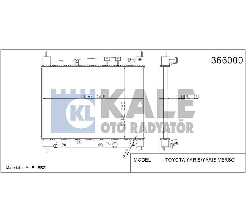 TOYOTA SU RADYATÖRÜ (AT) YARIS 00-06 1.3 1.5 BENZİNLİ 350x478x16 KALE