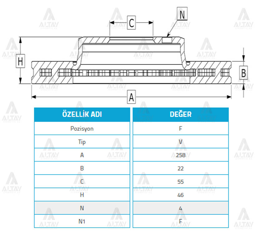 TOYOTA YARIS ÖN FREN DİSKİ 12/- 258mm WOD